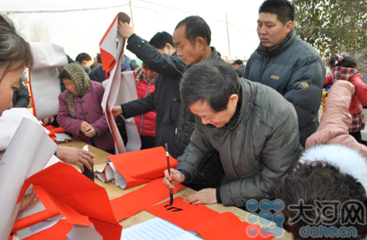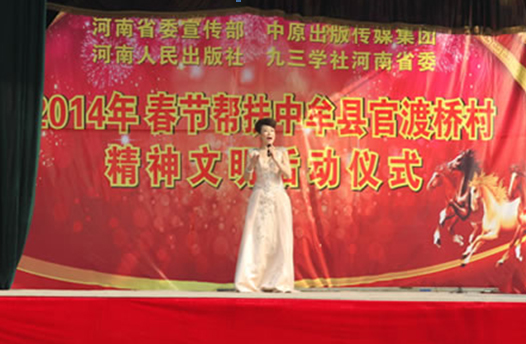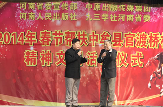 省委宣傳部副巡視員杜瑞明代表省直四家單位講了話,向官渡橋村村民送上節(jié)日的祝福。隨后,慰問團的領導向官渡橋村農民群眾和小學生贈送了文體用品。由省委宣傳部邀請的薛青、郝曉冬等省內多位知名演員為村民們表演了歌舞《田野里的春天》、豫劇《朝陽溝》選段、相聲《大腕研究》、嗩吶《百鳥朝鳳》等七個精彩的節(jié)目。在近兩個小時的演出中,臺上演員們精彩的表演,博得群眾的陣陣掌聲。省委宣傳部機關黨委專職副書記李憲林、創(chuàng)建處處長張德偉揮毫潑墨,現場為鄉(xiāng)親們義寫春聯。省九三學社邀請的省醫(yī)療專家為鄉(xiāng)親們傳播健康衛(wèi)生知識,現場檢查治療。中原出版集團和河南人民出版社為鄉(xiāng)親們贈送了科技圖書讓大家過春節(jié)時學習,整個慰問活動場面熱烈,氛圍濃厚。
