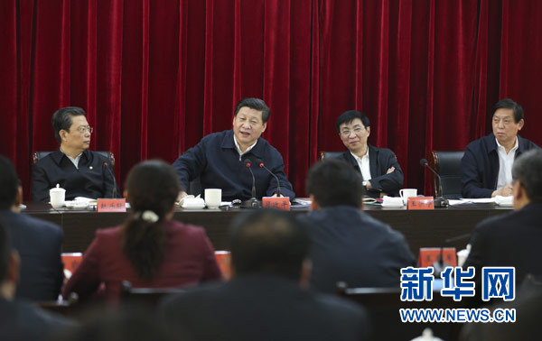 3月17日至18日,中共中央總書(shū)記、國(guó)家主席、中央軍委主席習(xí)近平在河南省蘭考縣調(diào)研指導(dǎo)黨的群眾路線教育實(shí)踐活動(dòng)。這是3月18日,習(xí)近平聽(tīng)取蘭考縣教育實(shí)踐活動(dòng)情況匯報(bào),并發(fā)表重要講話。(新華社記者 丁林 攝)