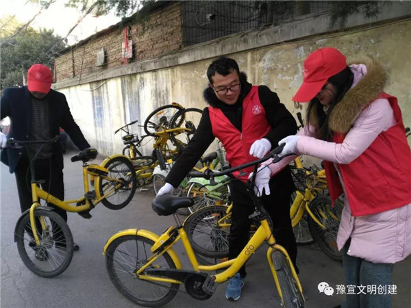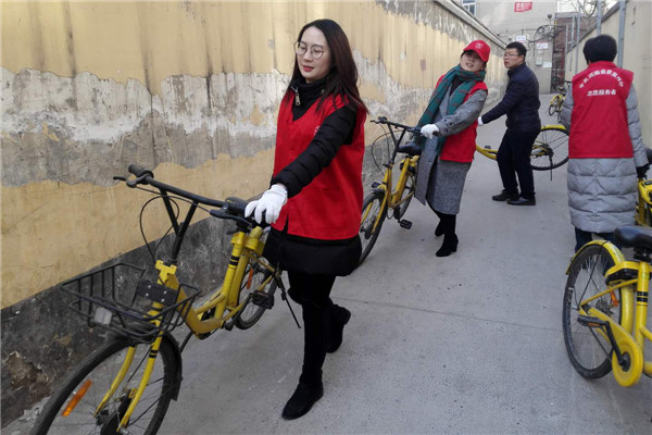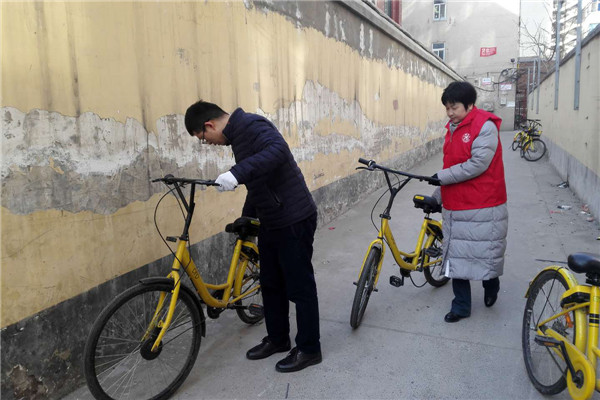 志愿者們冒著寒風(fēng)和低溫,清理家屬院里違規(guī)停放小黃車,并引導(dǎo)社區(qū)居民講文明、樹新風(fēng),養(yǎng)成良好的行為習(xí)慣。經(jīng)過一個多小時的勞動,雖然手都凍紅了,但看到近百輛擺放的整整齊齊的單車和井然有序的院子,大家都有滿滿的成就感,也體會到了奉獻的快樂。